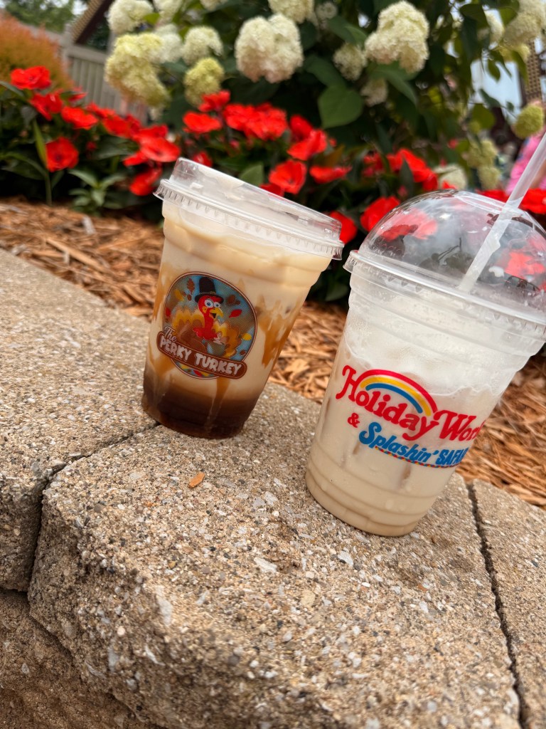 We started the day in my favorite area of Holiday World – Thanksgiving. Before the trip I excitedly told Dave “The Perky Turkey has a Pecan Pie Latte!!” If you’ve ever seen a dog with a confused head tilt — that was Dave’s reaction. My niece had sent a text message with several “deals” at Holiday World and one of them involved the Pecan Pie Latte at the Perky Turkey coffee shop in the Thanksgiving area. But I understand his confusion as I sprung that information on him while he was brushing his teeth.