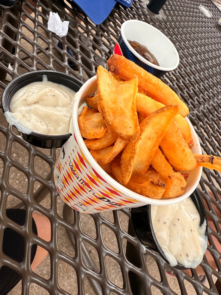 In case you’re confused at what you’re looking at – that is a breaded skirt steak, marinara sauce, mozzarella, giardiniera, and is served on a Turano French roll. We watched one of the employees hauling in massive bags of bread as we were leaving. Trust me -it’s worth a 3 hour trip to eat this sandwich.