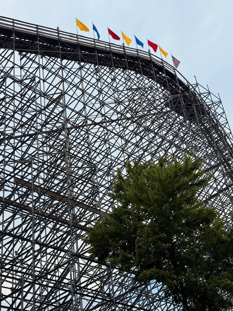 Halloween is where you find two more award winning wooden roller coasters, The Legend and The Raven. The Legend races you through the woods like you’re being chased by the Headless Horseman. The Raven, named from Edgar Allen Poe’s famous poem, is a fan favorite and is on a lot of coaster enthusiast’s “Top 10” list. Kitty Claws suggests if you are new to roller coasters or wooden coasters to start with the The Raven, then head to the The Legend and end with The Voyage. Towards the end of the day and after a few trips on Good Gravy! the great niece and nephew got braver and decided to ride the The Legend. I’m not sure they loved it, but they were excited to tell everyone and take pictures.