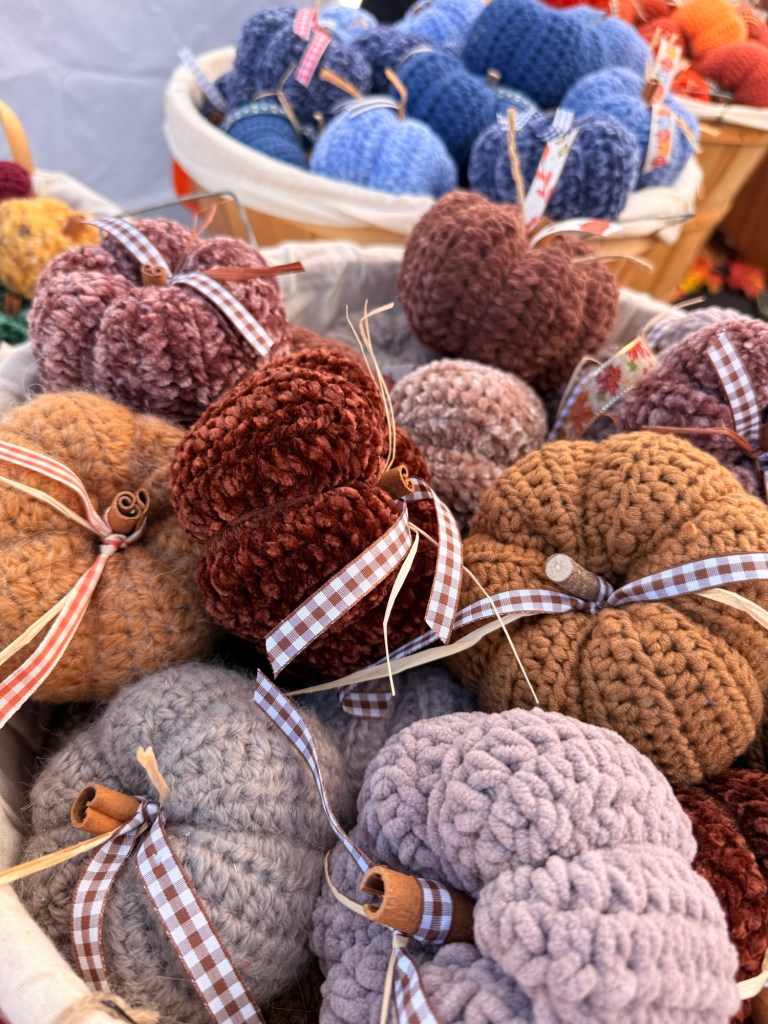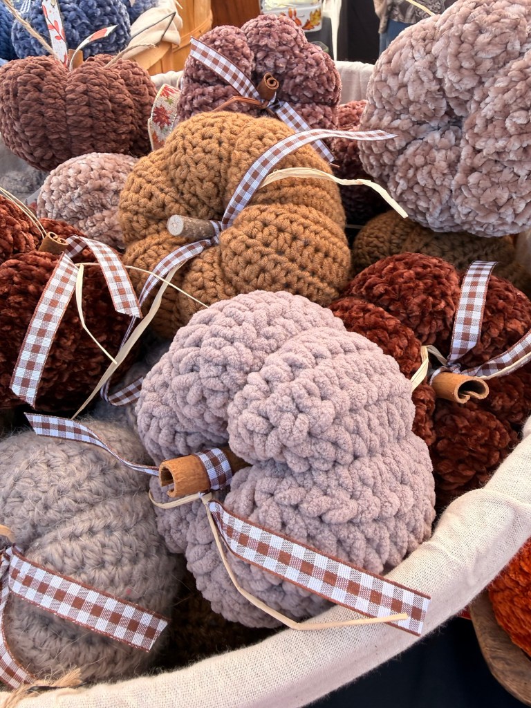 We got there early – about 20 minutes after they opened and they had us parking out in the orchard because the parking lot was already completely full. As weird as it was to roll over a few stray apples and turn down a row of apple trees, we still got fairly decent parking considering as we were leaving there was a line of about 100 cars attempting to get in. We walked the craft fair first, which is always a good time to find unique crafted things. That’s also the reason we went – my nieces mother-in-law had a craft booth. Peep her adorable crocheted pumpkins 👀