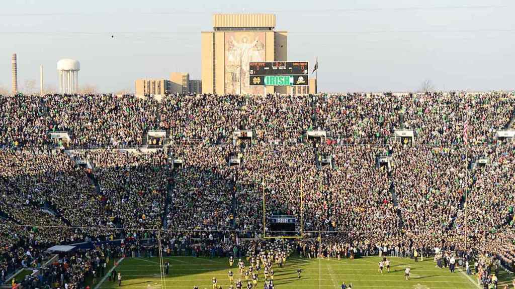 Seriously, in a post about Notre Dame football you didn’t think I’d use this 1940 classic movie quote? By the way, the quote is from a movie, not Regan’s campaign speeches. The movie did star young Ronald Regan as George Gipp, the ill fated football player who died his senior year due to pneumonia and strep infection. Which lead to the famous Knute Rockne quote. But, let’s talk about Knute. After playing football and graduating Notre Dame, he became the head football coach in 1918 and led the Irish to three national championships, five undefeated seasons, and a win at the Rose Bowl in 1925. This football success lead to unprecedented growth at the University and set into history the legacy of the Fighting Irish football team. While Notre Dame is a world class University known for national research and economics, many people only know it as a “football school.”